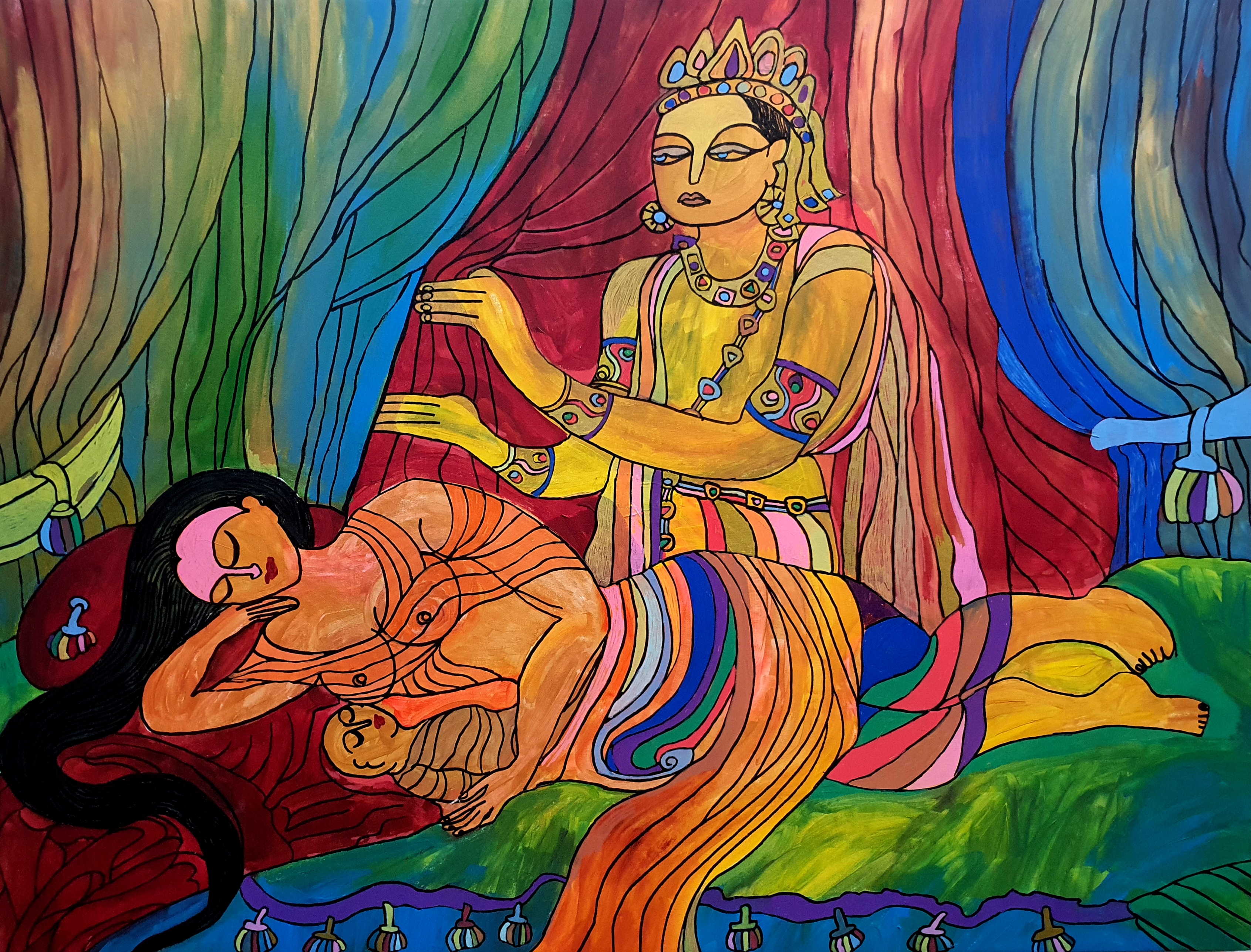 Request of all the deities to the Bodhisattva in Tushita to take life in the World